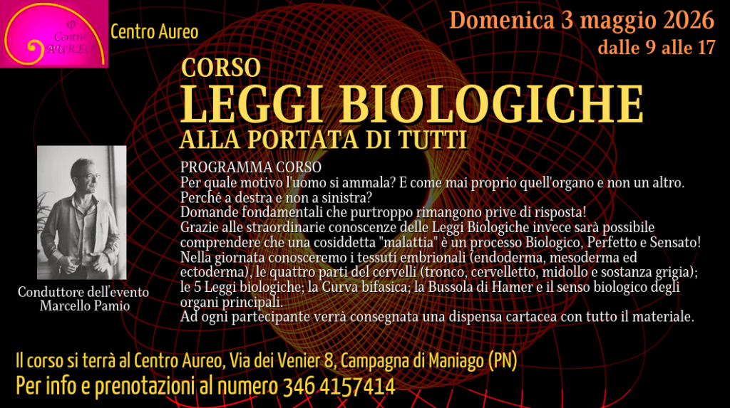 Domenica 3 maggio dalle 9 alle 17 al Centro Aureo di Campagna di Maniago (PN) terrò l'ultimo corso intensivo (prima della pausa estiva) dedicato alle Leggi Biologiche.